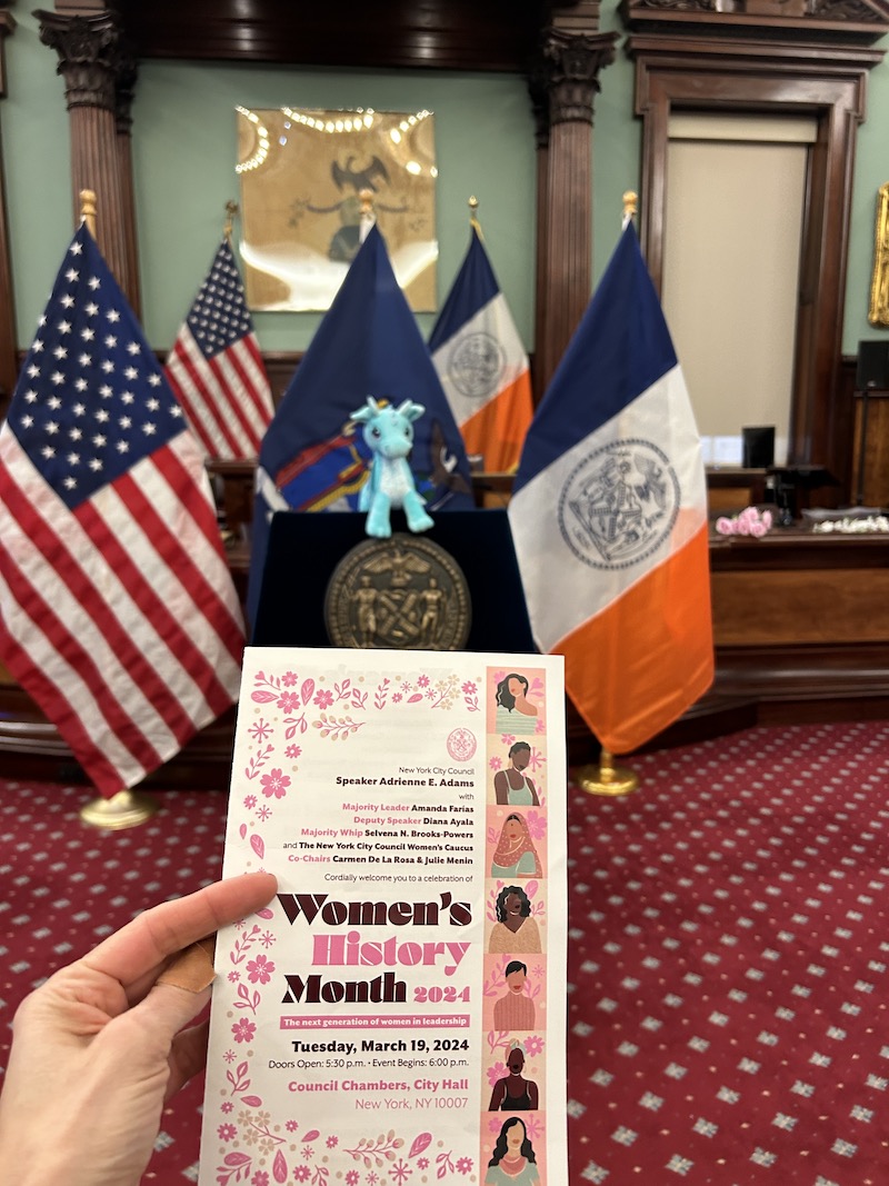 On March 19, 2024, T.E.A.L.® staff and Josephine the Dragon attended an event at City Hall celebrating Women’s History Month. The event, The next generation of women in leadership, featured New York City Council Members: Speaker Adrienne E. Adams, Majority Leader Amanda Farias, Deputy Speaker Diana Ayala, Majority Whip Selvena N. Brooks-Powers and The New York City Caucus Co-Chairs, Carmen De La Rosa, and Julie Menin.