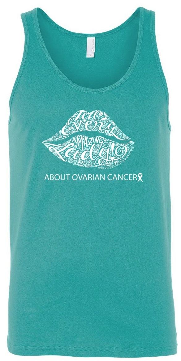 Tell Every Amazing Lady® lip logo with teal ribbon in lower left corner.